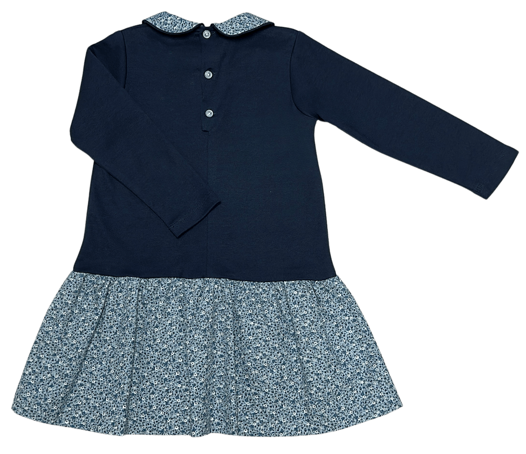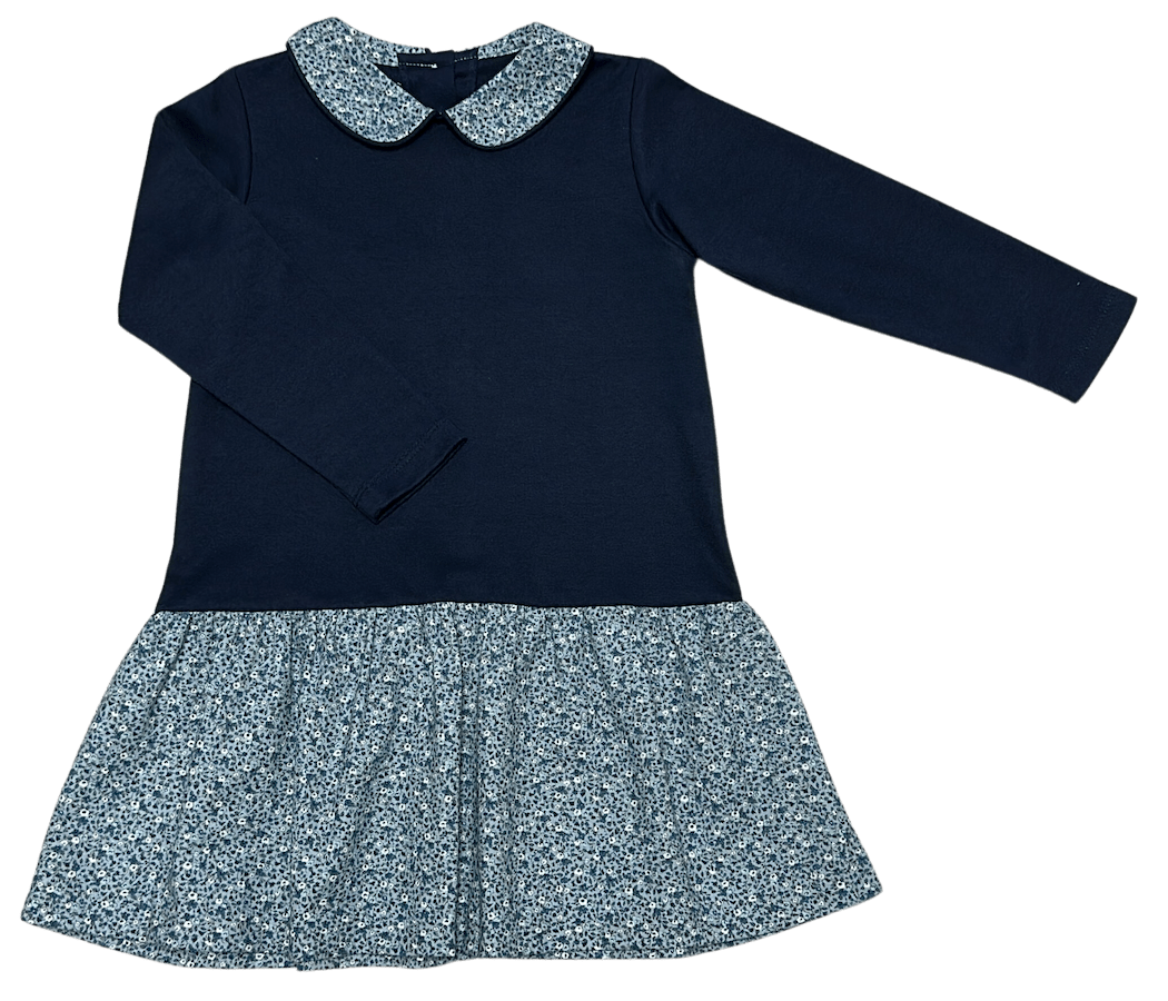 Our Girls Navy Floral dropwaist Dress is a timeless piece designed for both comfort and charm. Perfect for toddlers through early girl years, this sweet dress features a classic navy bodice, a delicate floral Peter Pan collar, and a matching floral skirted dropwaist for a touch of playful elegance. Crafted with soft, breathable fabric, it’s ideal for fall outings, school days, family gatherings, and photos. A beautiful blend of traditional style and everyday wearability, this dress is sure to become a wardrobe favorite.